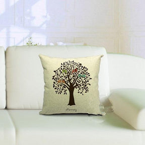 All 4 Kids 45cm Square Throw Pillow Cushion Cover - Brown Tree with Bird