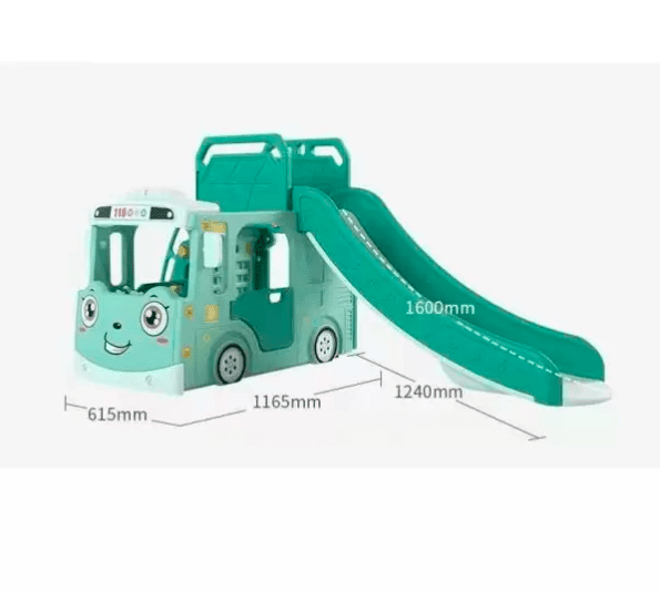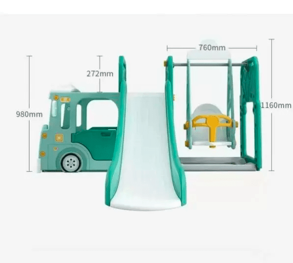 - Features a swing, a slide and a bus shape play area