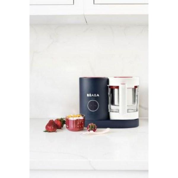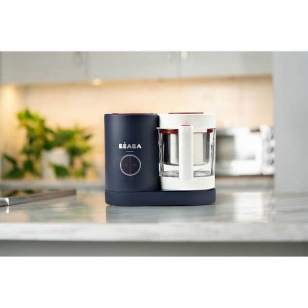 The Beaba Babycook Neo makes up to 1250 ml of food in a sleek, patented countertop appliance that steam cooks, blends and reheats/defrost all-in-one, in 15 minutes or less. Refrigerate or freeze leftovers, then simply defrost and reheat right in the Babycook Neo.