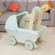 Patterned in pastel shades with traditional nursery shapes. The pram includes bedding and tipping stoppers. It fits dolls up to 35cm in length. The Rubber edged wheels allow the pram to move smoothly over both carpet and hard floor surfaces.